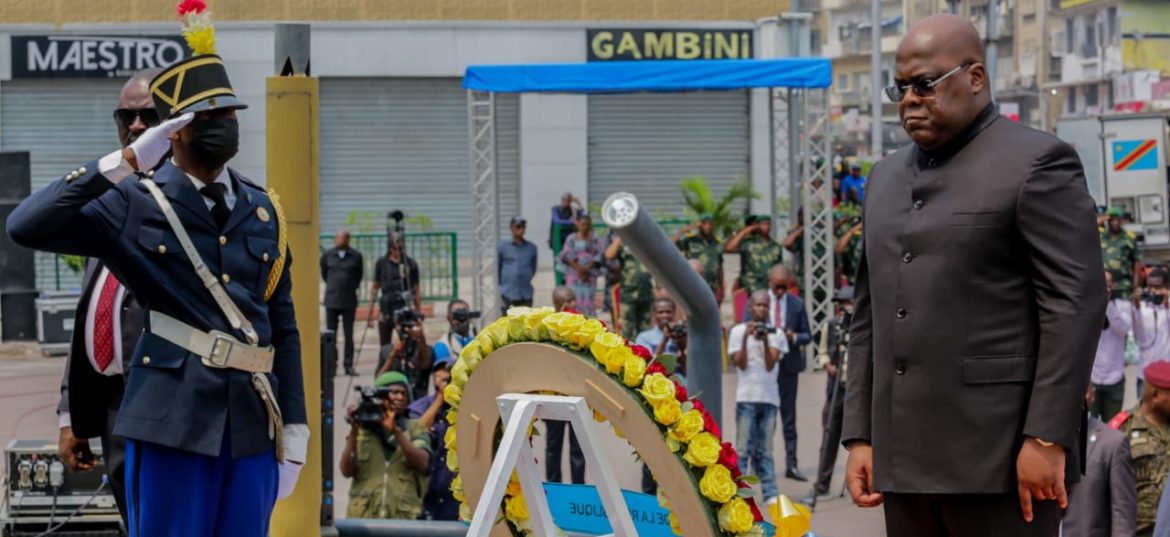 Le Président de la République a déposé une couronne de fleurs aux pieds du Mémorial du soldat inconnu au rond-point Forescom dans la commune de Gombe à Kinshasa. La date du 17 mai commémore la journée du soldat congolais.Cette année le thème choisit était : « ARMÉE-NATION » c’est-à-dire l’armée au service du peuple. C.K