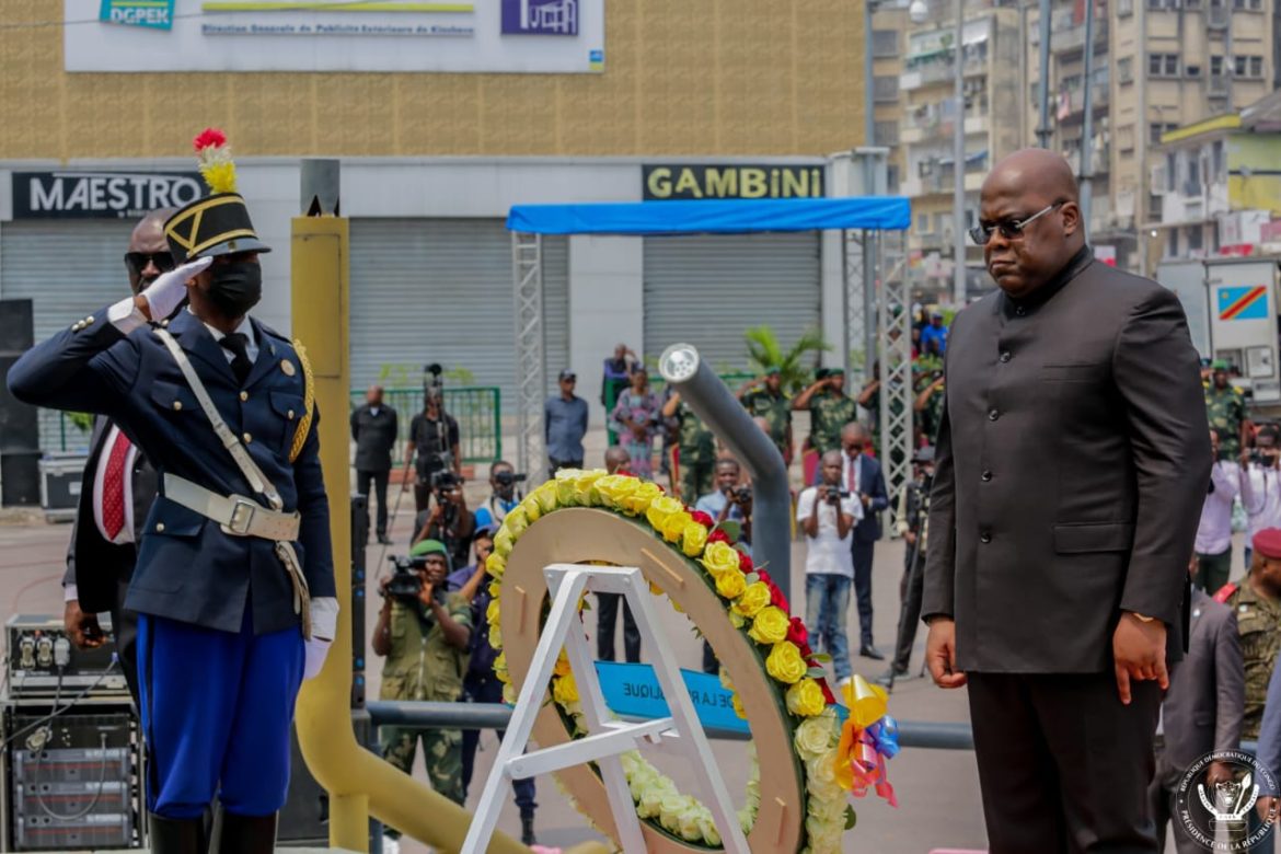 Le Président de la République a déposé une couronne de fleurs aux pieds du Mémorial du soldat inconnu au rond-point Forescom dans la commune de Gombe à Kinshasa.