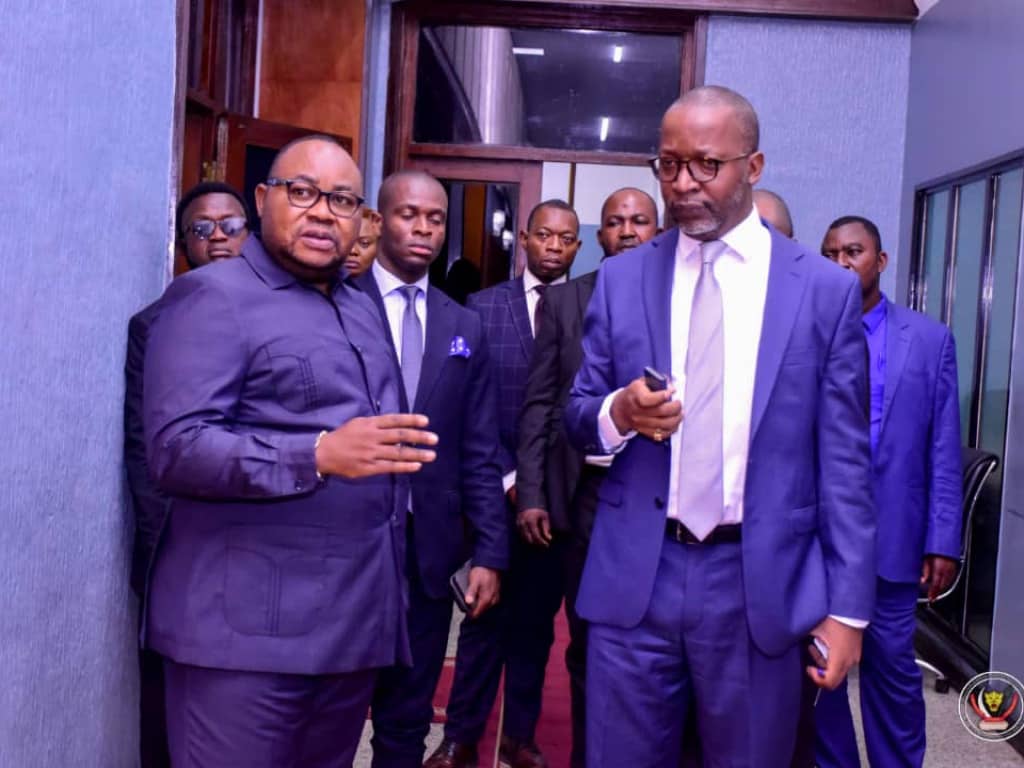 Eddy Mundela Kanku et Didier Manzenga Mukanzu ont discuté de l’aménagement du Palais du Peuple, site choisi pour abriter ces assises.