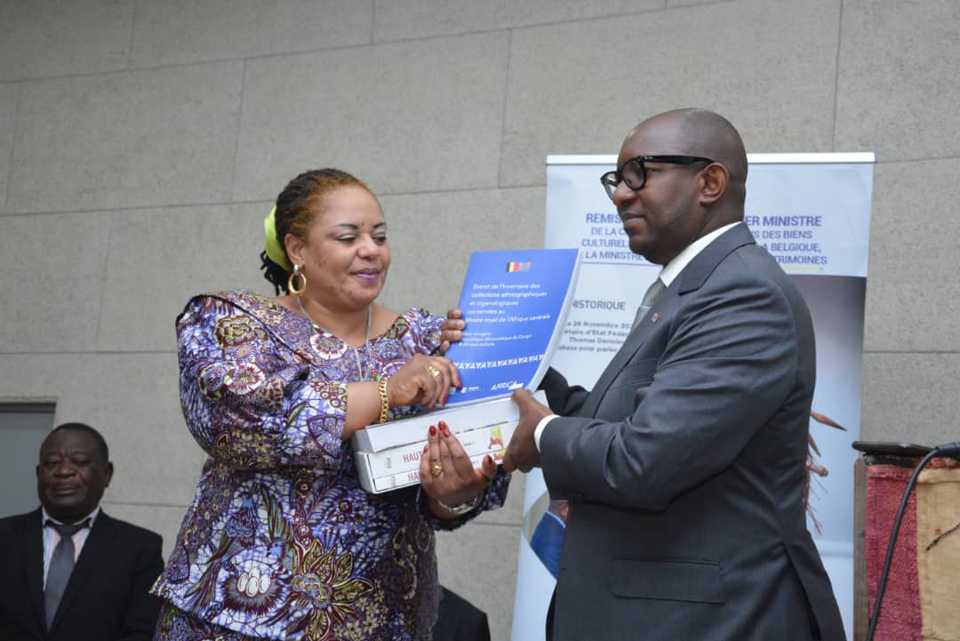 Après avoir réceptionné en février, au Musée Royal de l’Afrique centrale à Tervuren en Belgique, des mains de son homologue Belge Alexandre de Croo, le répertoire et la cassette des objets culturels détenus depuis la colonisation de la RDC, que le Premier ministre, Jean-Michel Sama Lukonde Kyenge, a procédé jeudi à la remise officielle de ces documents importants répertoriant 84 mille objets culturels, à la ministre de la Culture, Arts et Patrimoines, Catherine Kathungu Furaha.