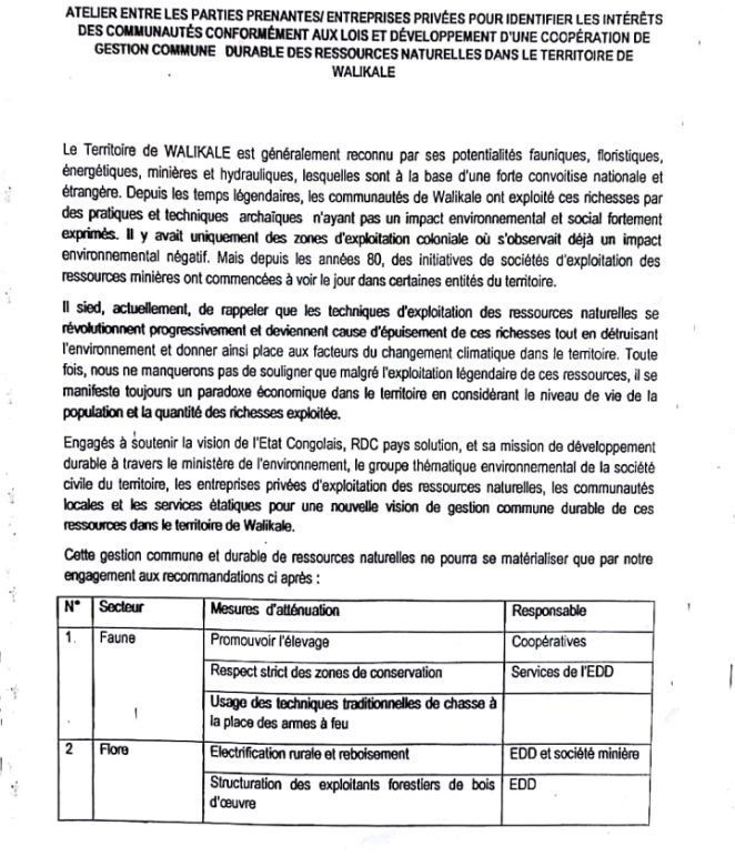 Le territoire de Walikale a bénéficié d’une crème intellectuelle grâce à la tenue d’un atelier d’échange fructueux entre les parties prenantes et les entreprises privées pour identifier les intérêts des communautés conformément aux lois et développement d’une coopération de gestion commune durable des ressources naturelles dans cette partie de la RDC.